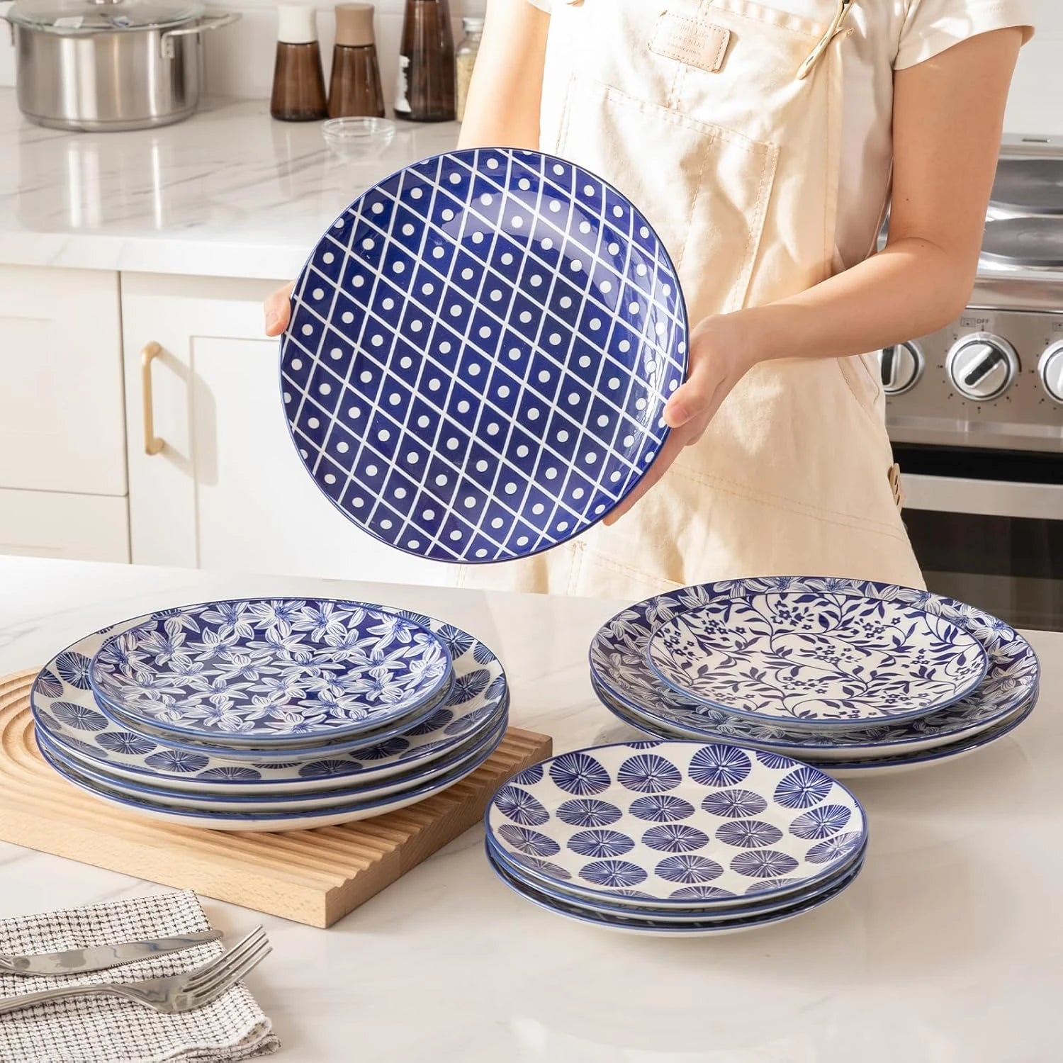 - Beautifully Curated Floral Centerpiece: Sweejar dessert plates feature the intricate blue floral pattern perfectly centered, transforming every meal into an artful presentation. The design coordinates seamlessly with our matching dinner plates and bowls set, allowing for effortless mix-and-match styling.